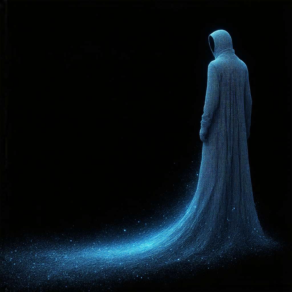 Entità 2: Utente. Rappresentare la silhouette semplificata di una persona, senza distinzione sul genere, mentre esplora l’interfaccia del motore di ricerca. Questa figura utilizza tratti essenziali e tonalità tenui per evidenziarsi.